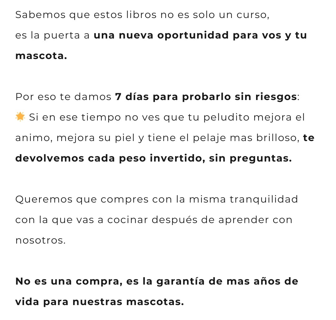¡Cero trucos, pura honestidad! Si en 7 días tus mascotas no te han coronado como su chef personal o no sientes la paz de darles lo mejor, simplemente pídenos tu dinero de vuelta. No hacemos preguntas incómodas, solo devoluciones rápidas.